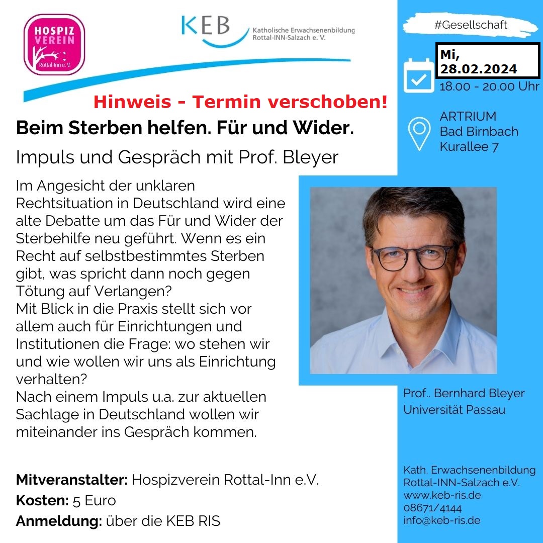 Beim Sterben Helfen. Für und Wider. (Ersatztermin) Gespräch mit Prof. Bleyer.